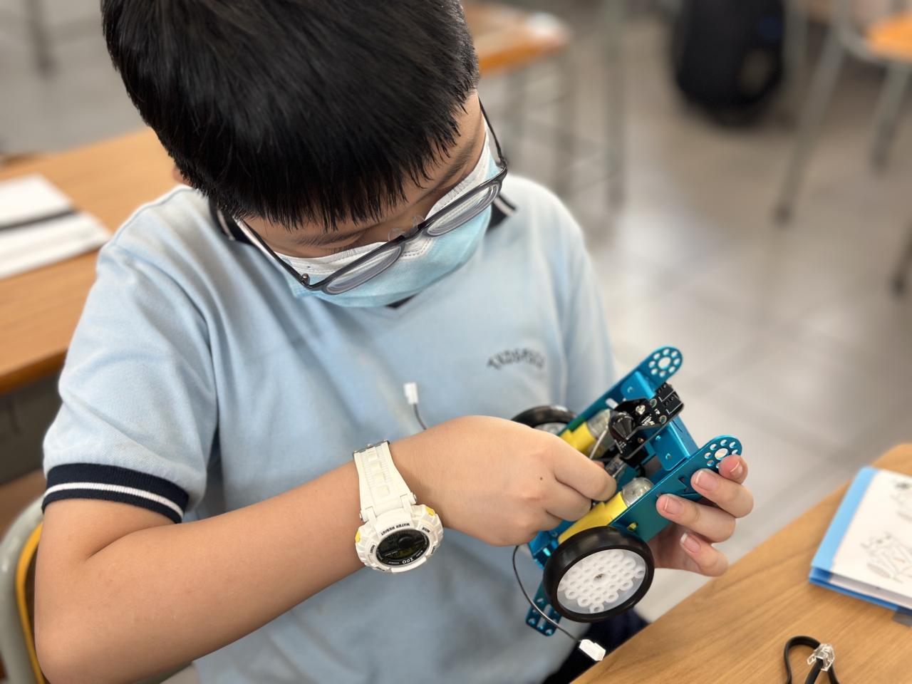 本校逢星期五舉行多元智能課,讓同學按興趣發揮潛能。參加「小小科學家」的同學,會學習組裝機械人、學習編程、設計遊戲等,盡情發揮STEAM才能!