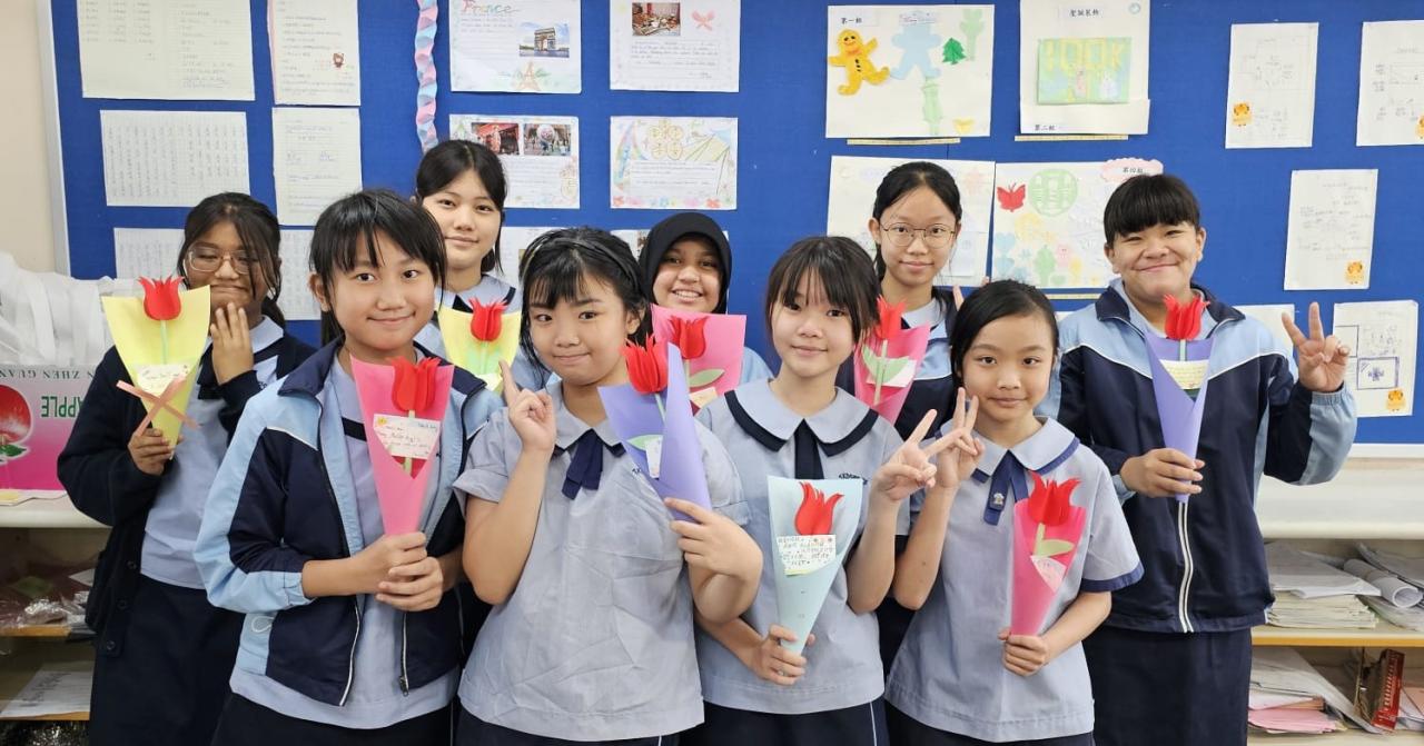 學校鼓勵同學以行動實踐愛。德育課堂上,同學製作心意卡和鬱金香花朵,然後帶回家送予媽媽或家中照顧者,以表達愛與感謝。希望家長們都能感受到同學們濃濃的愛意,祝母親節快樂!
