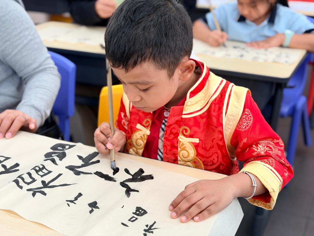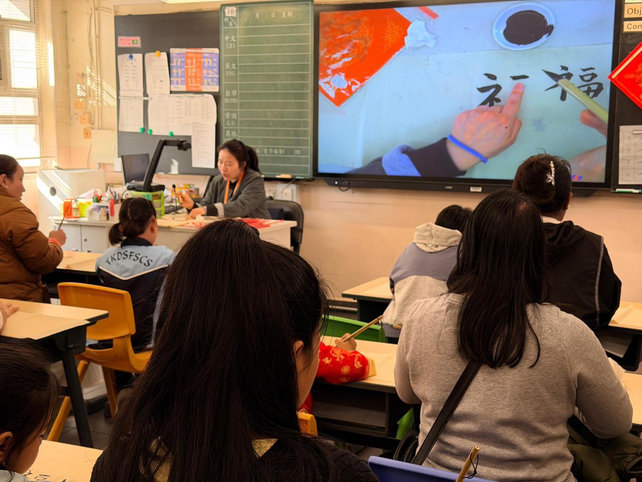 在農曆新年即將到來之際,本校於 1月17日 特別舉辦了毛筆書法親子體驗班,邀請一年級非華語家長與同學共同參與。大家親身體驗中國書法的獨特魅力,並親手書寫揮春,感受傳統文化。