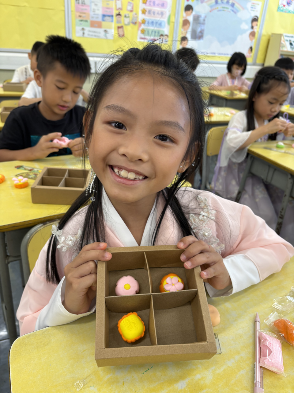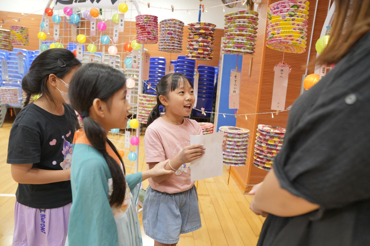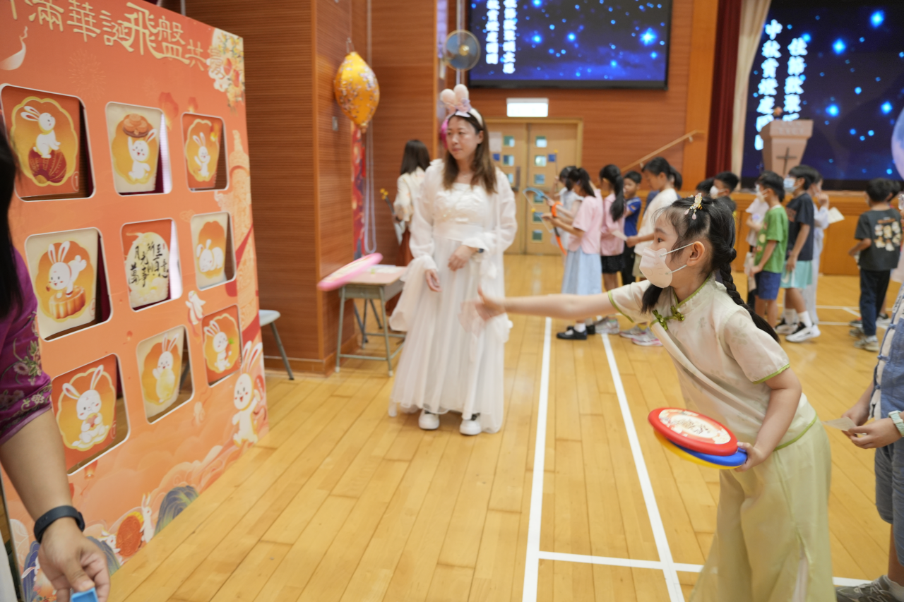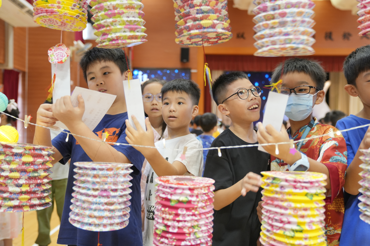 因此,本校在10月6日(農曆八月十五)舉行了「中秋賞燈慶團圓」中華文化節慶活動,包括:花燈設計比賽競選、猜燈謎、中秋攤位遊戲、同享中秋應節食品、輕黏土月餅製作和認識國家航天科技與探月工程,讓師生都能在校園內聚首一堂、共聚團圓。