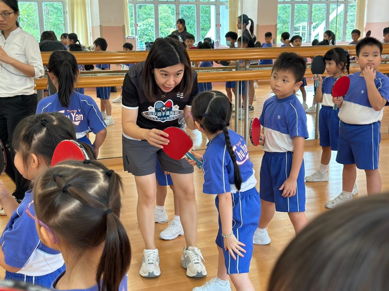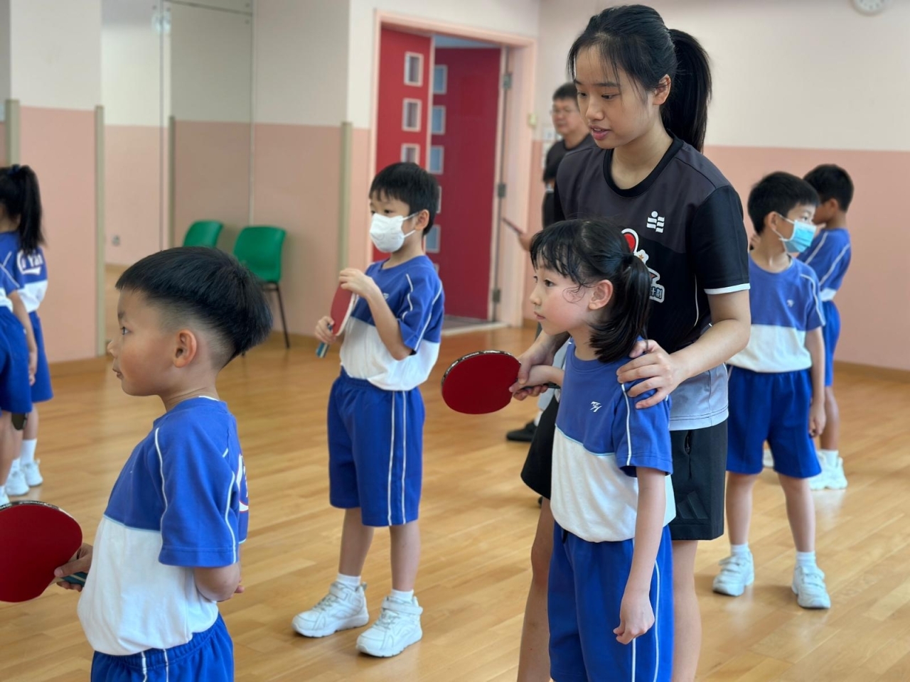 當天的體驗課中,李皓晴分享了自小接觸乒乓球運動的趣事。她與團隊亦親授本校30名一至三年級學生乒乓球基礎技巧,包括握拍姿勢、正手及反手接球技巧。教練團隊專業認真,學生們反應熱烈,表現主動投入,認真地學習乒乓球技巧,感受打乒乓球的樂趣。