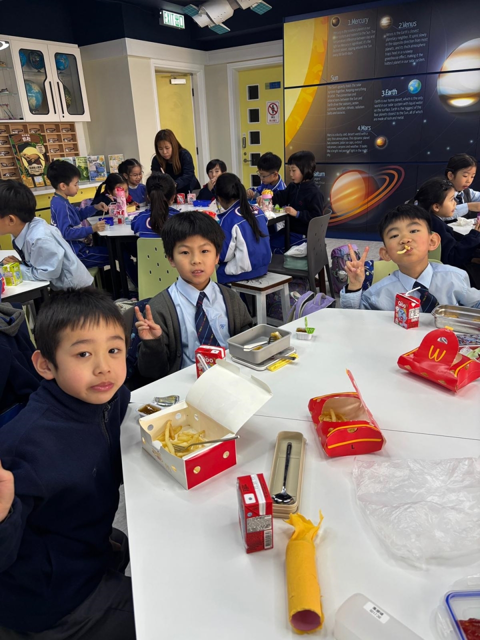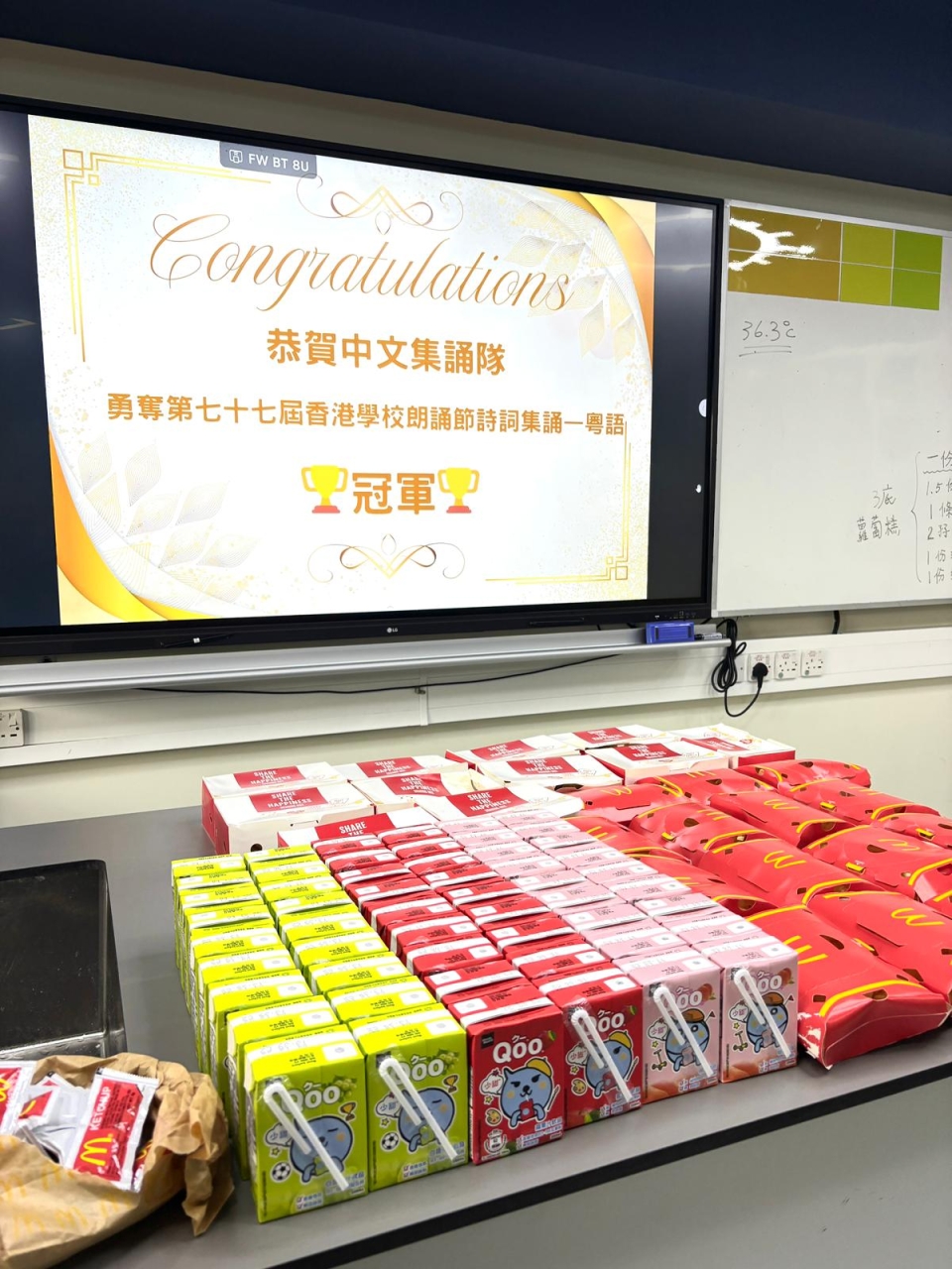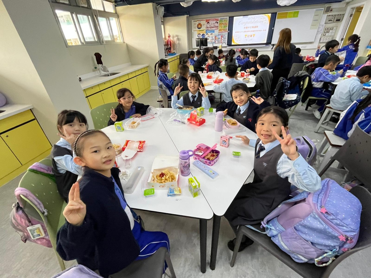 為恭賀本學年的中文集誦隊(小二學生)榮獲第七十七屆學校朗誦節詩詞集誦比賽(粵語)冠軍,陳校長參與中文集誦隊慶功宴,祝賀一眾中文集誦隊的師生及合照,給學生送上衷心的鼓勵。在慶功宴中,學生享用美食之餘,亦不忘老師一直以來的栽培與指導,整個過程恩典滿滿!