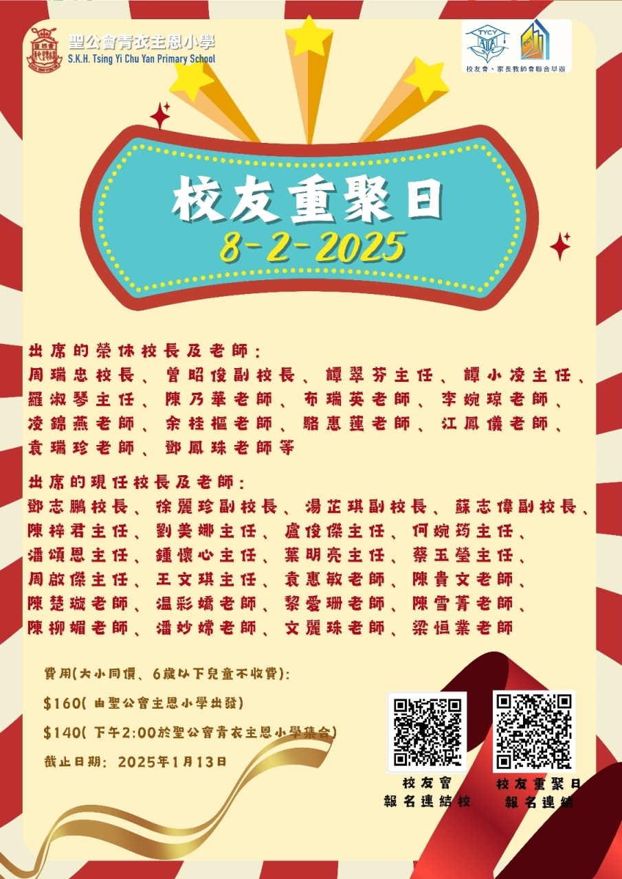 第二屆「校友會」暨「家教會」聯誼活動~「2025年2月8日校友會重聚日」參加表格