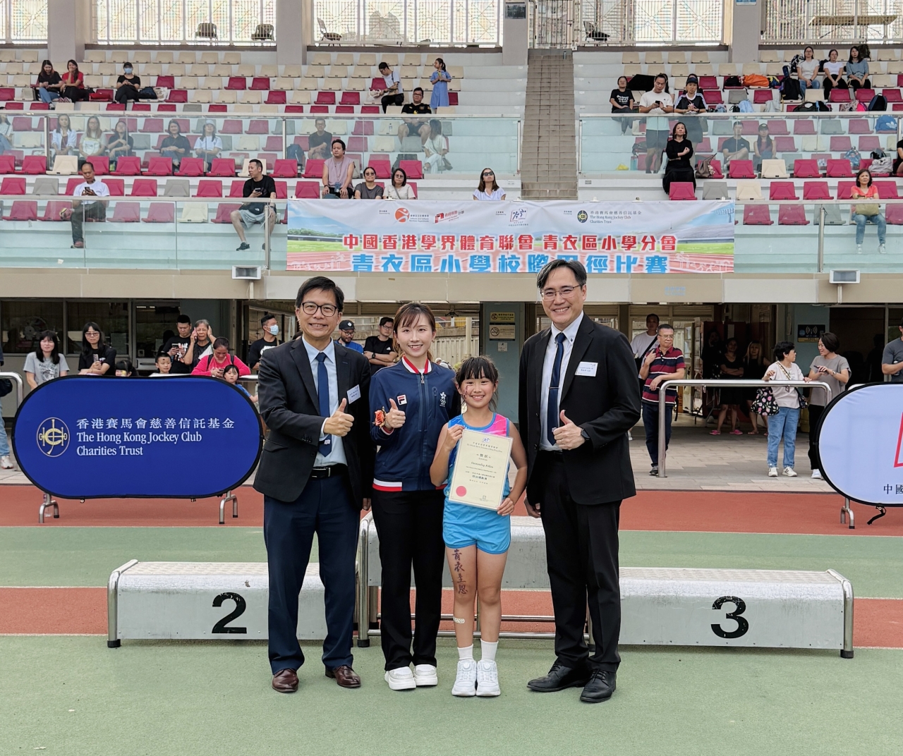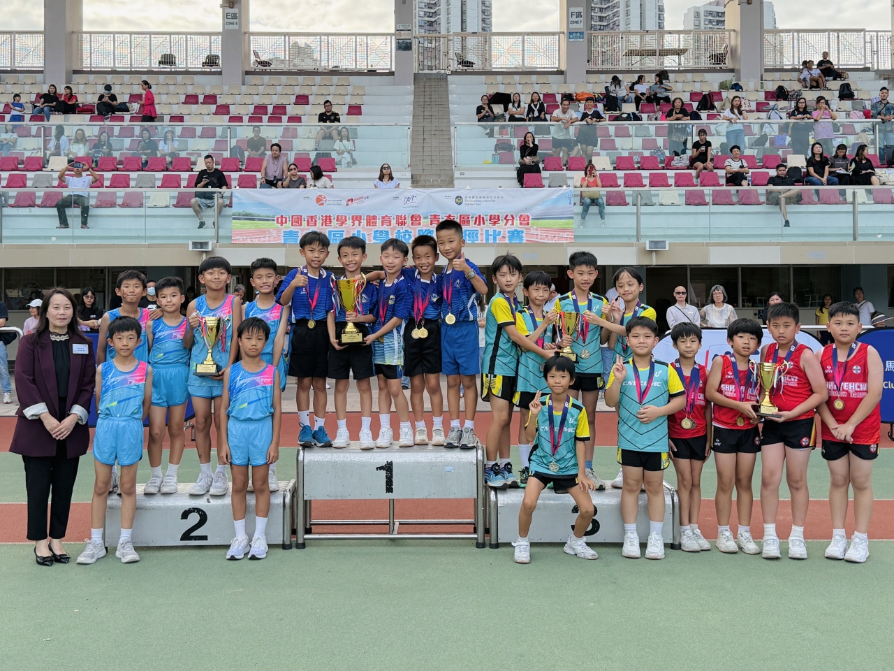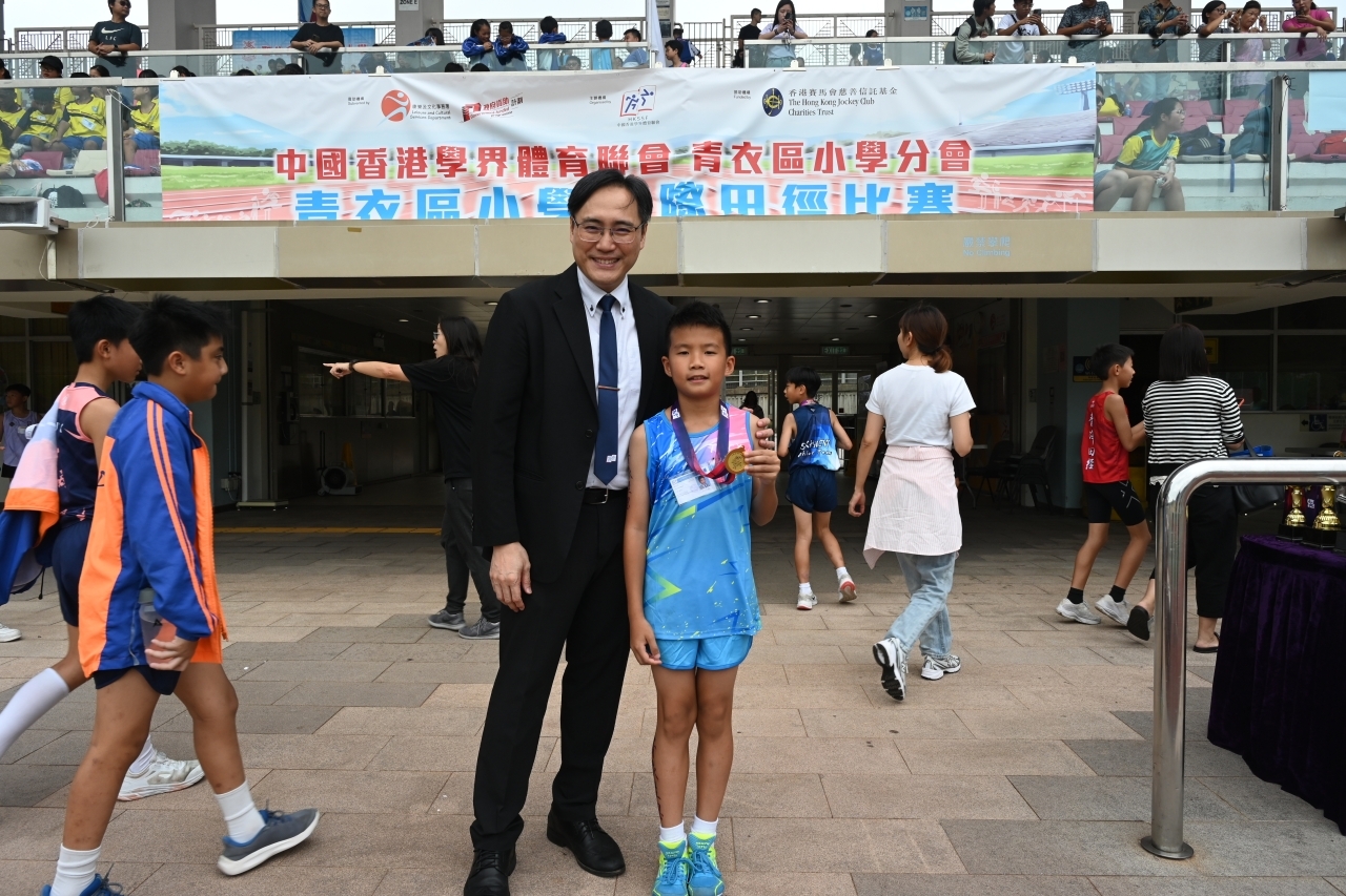 中國香港學界體育聯會青衣區小學分會校際田徑比賽於二零二五年十月三十日圓滿結束,這次的競賽不僅能鍛鍊學生強健的體魄,也促進了運動員的技術交流。我校健兒們在賽場上揮灑汗水、堅毅拼搏;他們不停突破自我、展現體育精神,成績斐然,實在值得嘉許!